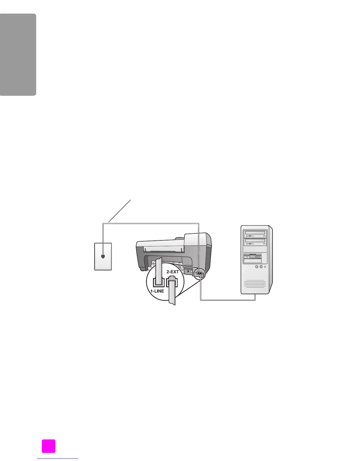 telephone wall jack and plug it into the port labeled “2-EXT” on the back