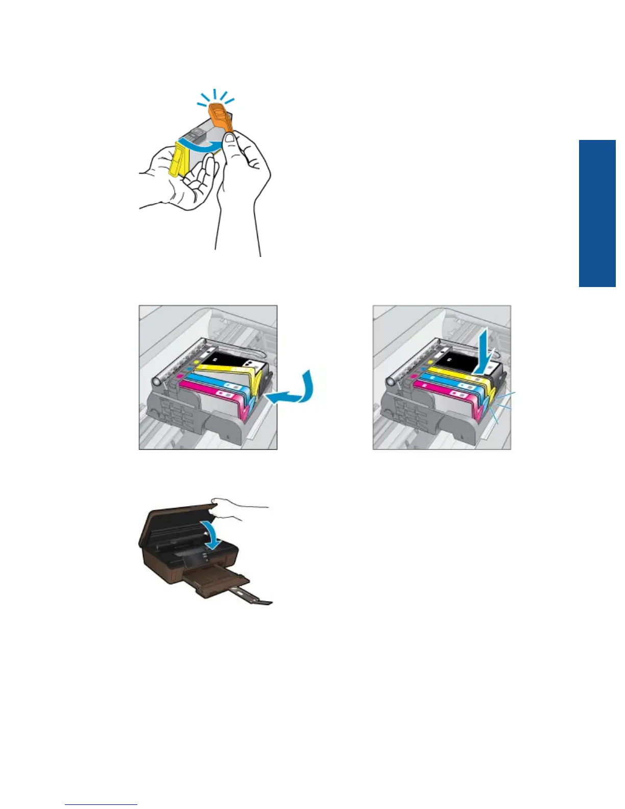 c. Match color icons, then slide cartridge into slot until it clicks into place.
