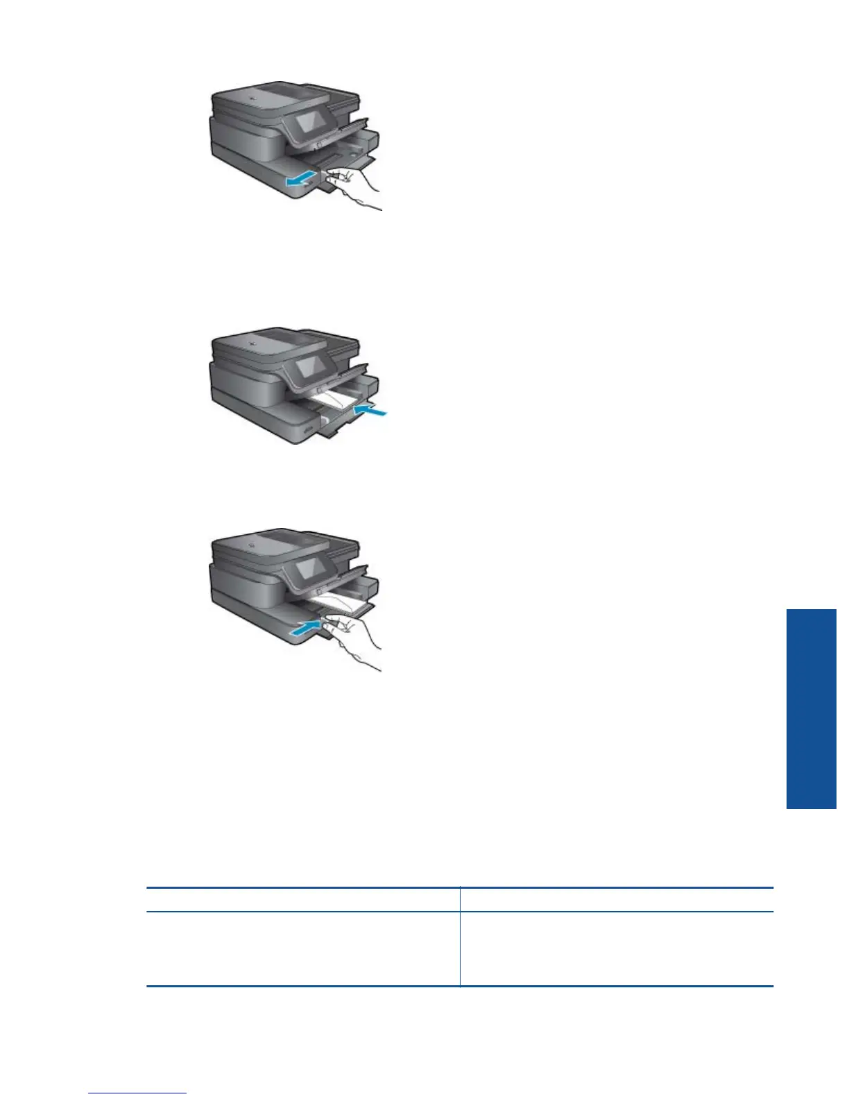 Insert one or more envelopes into far-right side of main input tray, with envelope flaps on left and