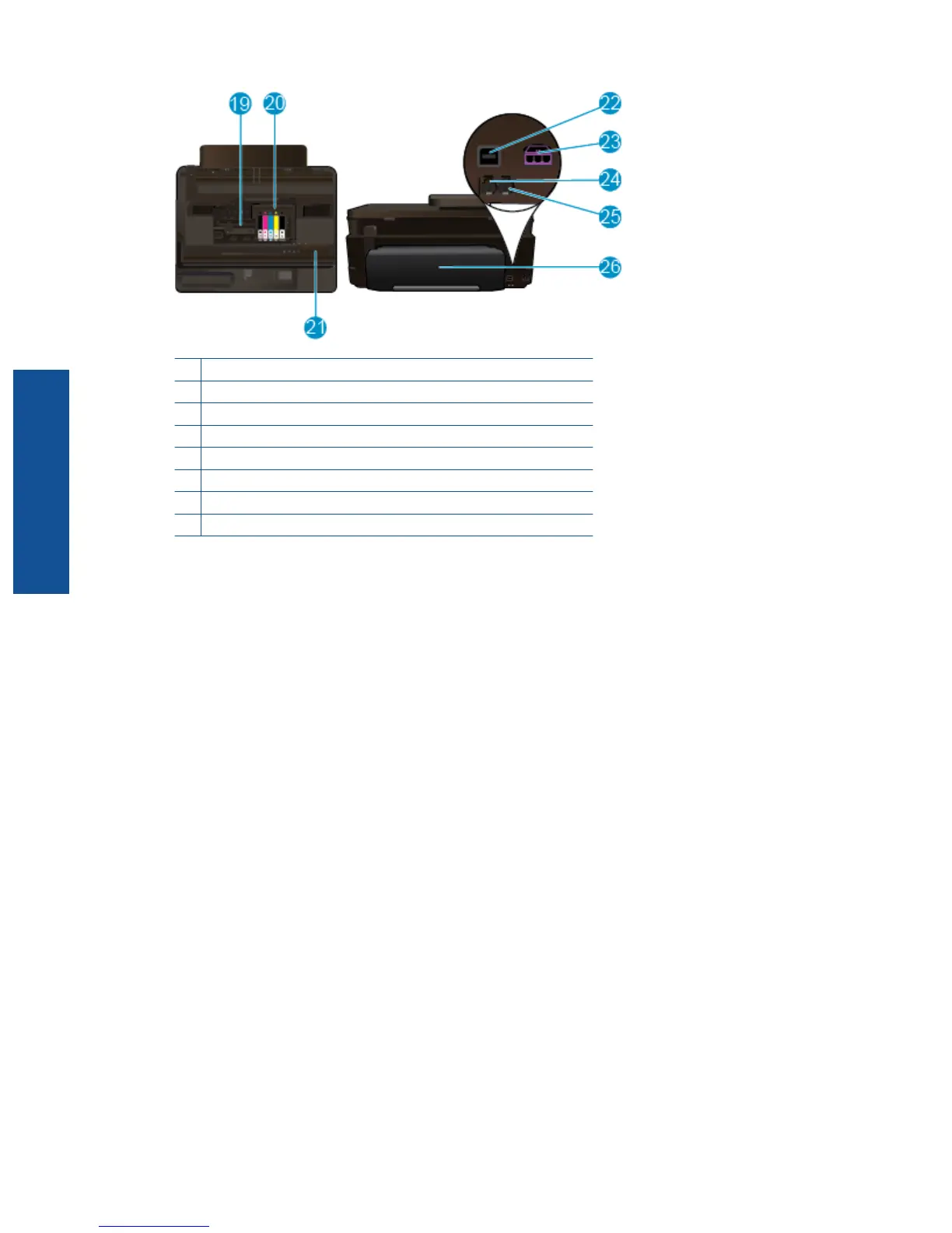 23 Power connection (Use only with the power adapter supplied by HP).