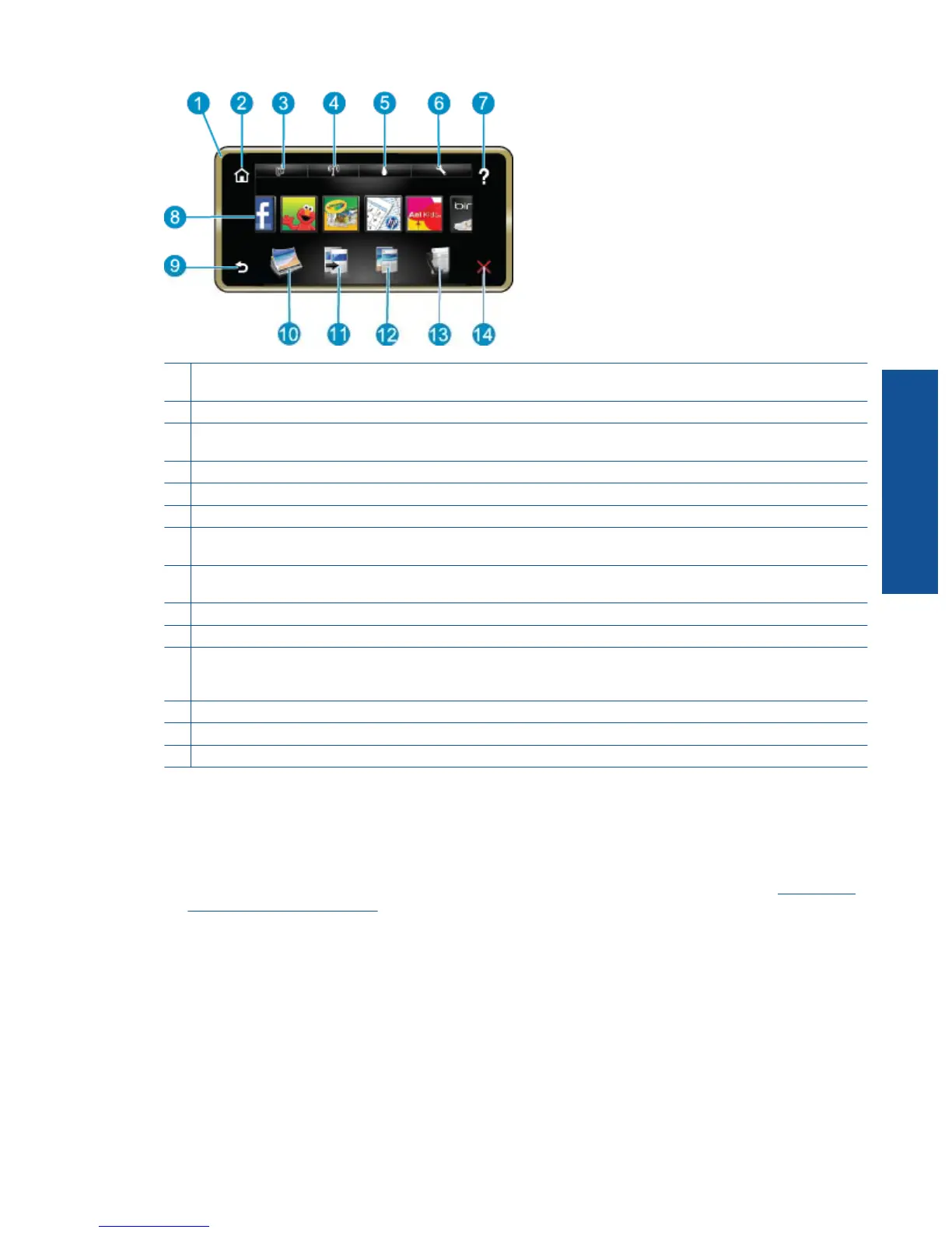 13 Fax: Displays a screen where you can send a fax, or choose fax settings.