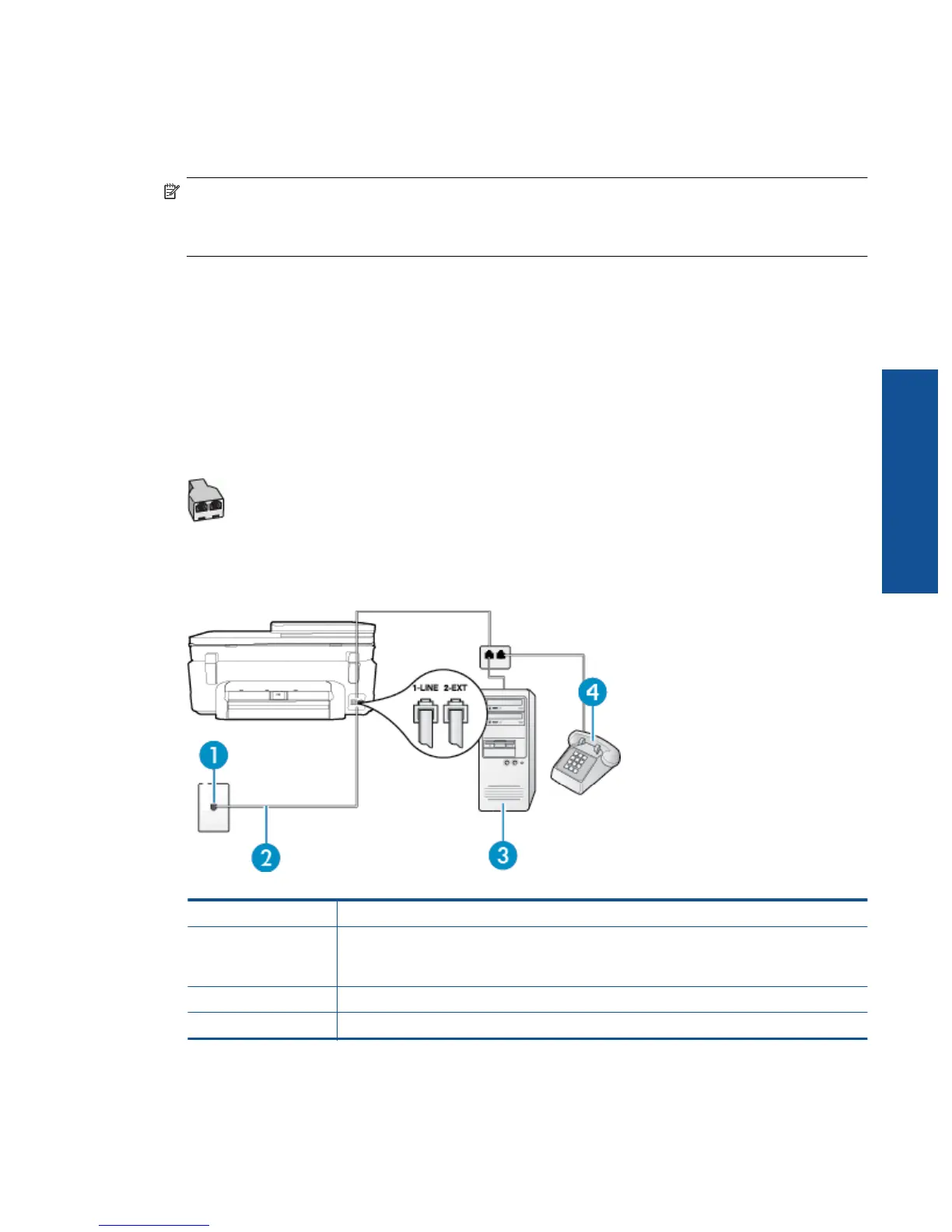 • If your computer has two phone ports, set up the printer as follows: