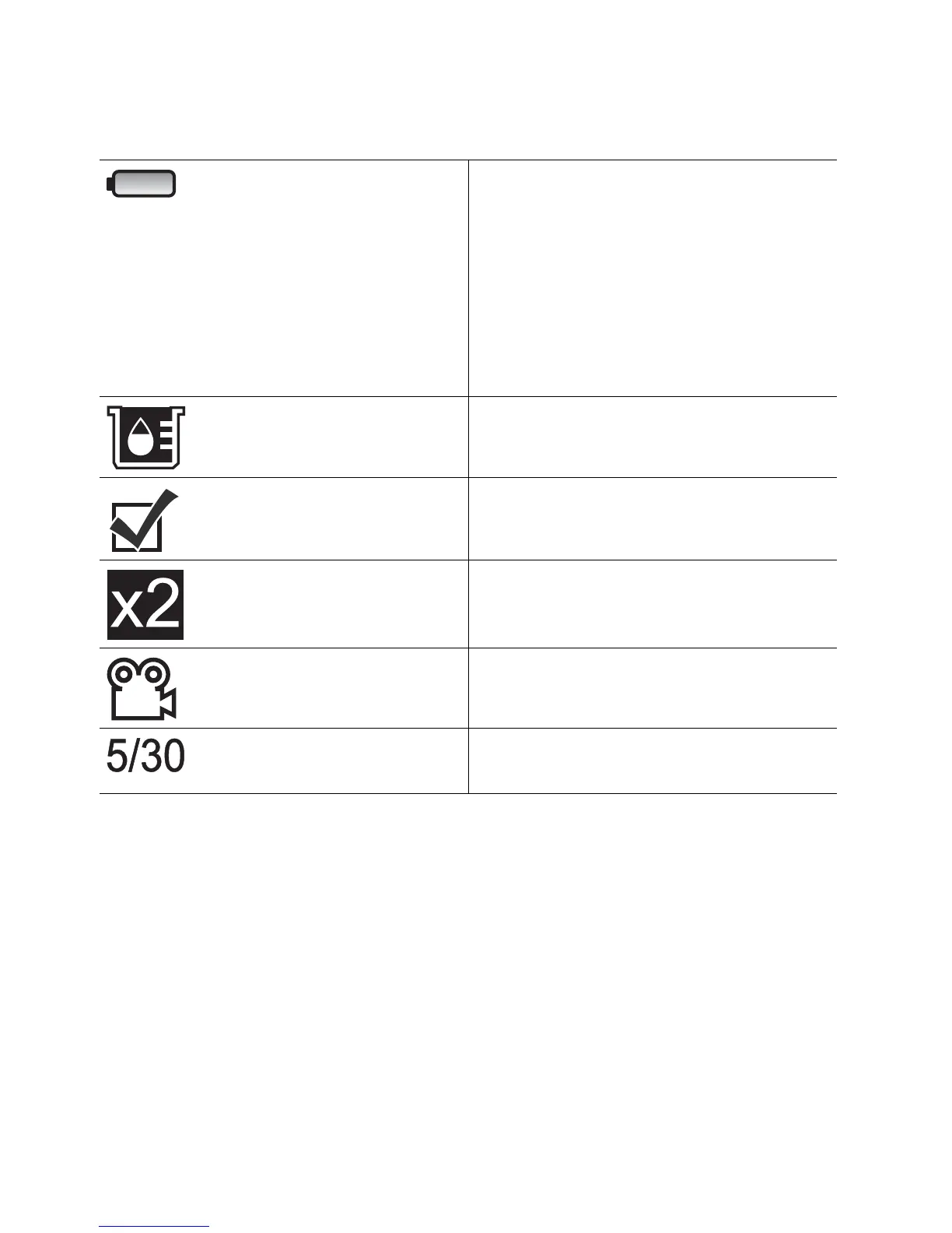 Icons on the printer screen provide information about the printer, such as the ink level of the print cartridge and the index number