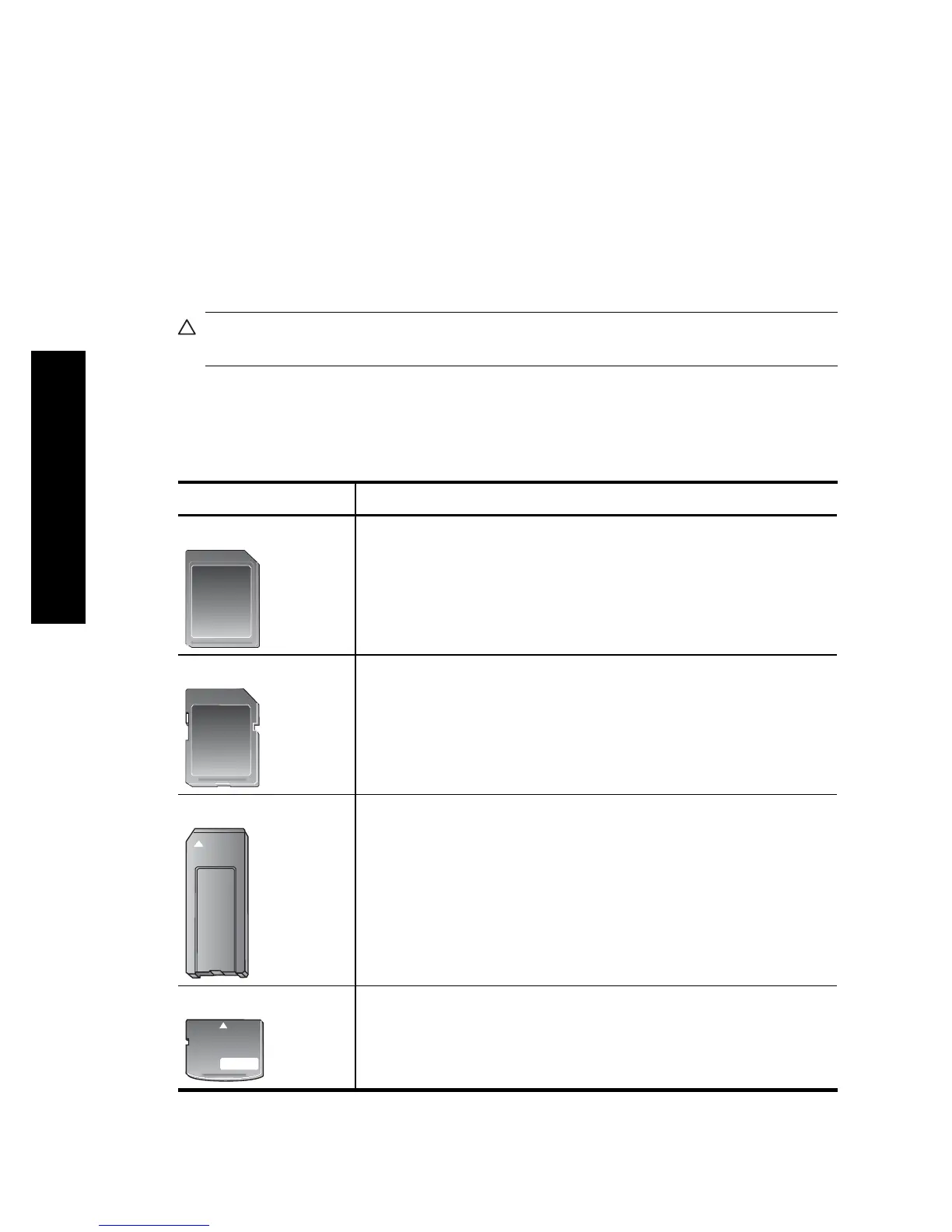 CAUTION: Using unsupported memory cards may damage the memory card and