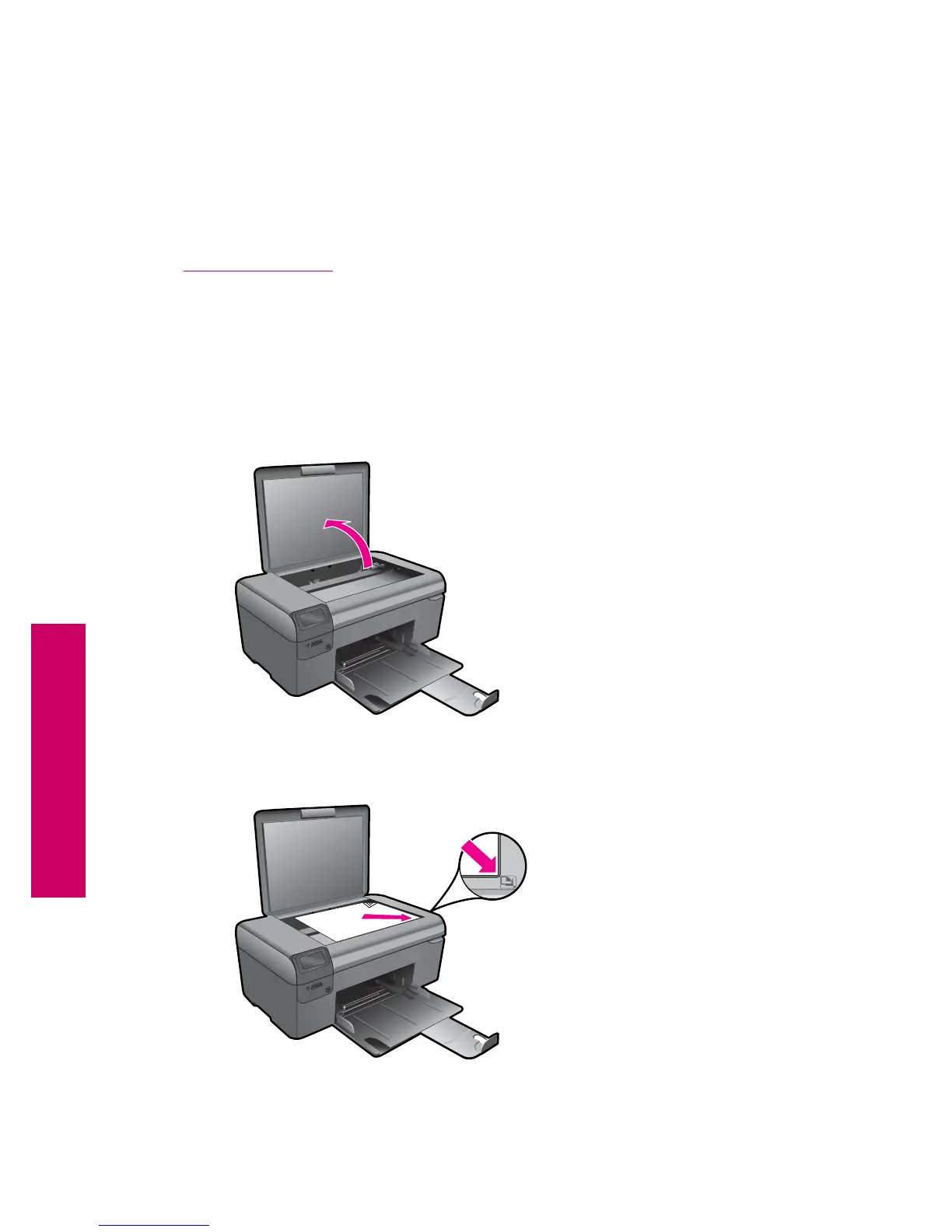 b. Load original print side down on right front corner of glass.