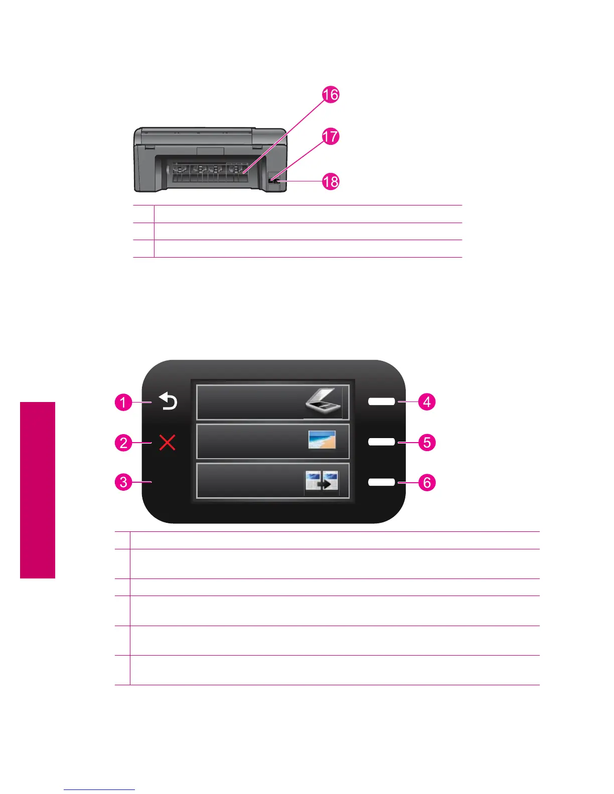 18 Power connection (Use only with the power adapter supplied by HP.)