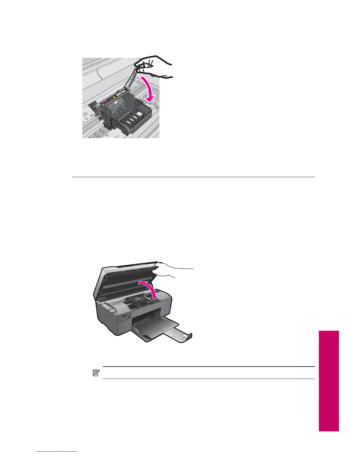 in incorrectly seated ink cartridges and problems printing. The latch must remain down