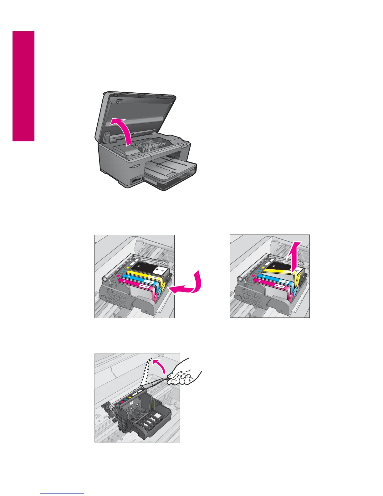 3. Remove all of the ink cartridges and place them on a piece of paper with the ink