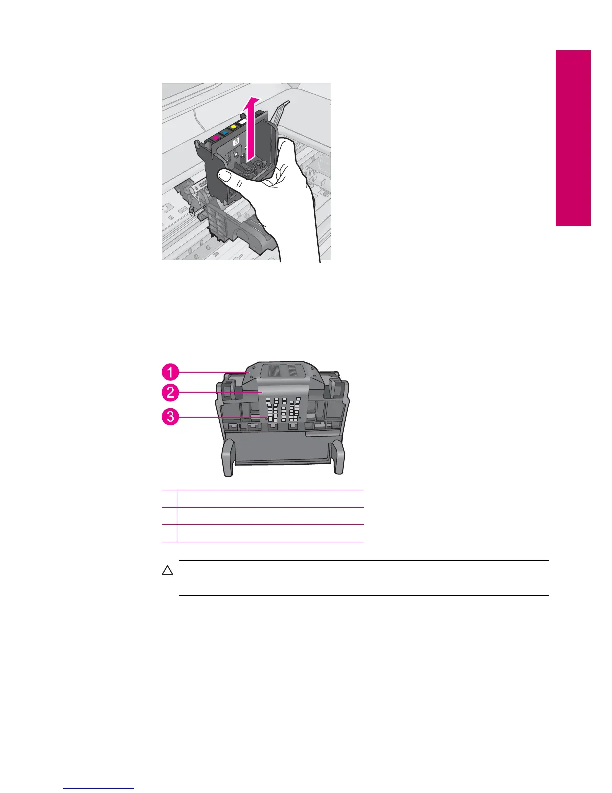 CAUTION: Touch the nozzle and the electrical contact areas only with