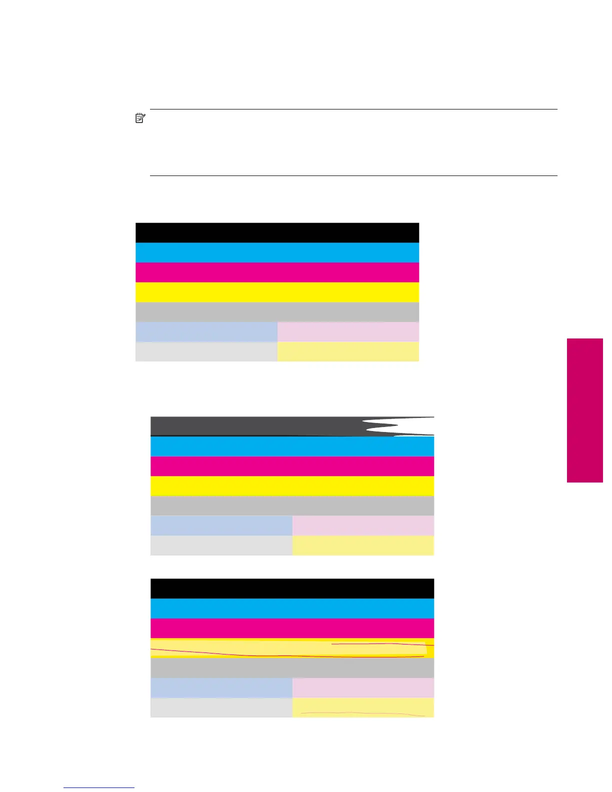 • If any of the color bars are irregularly streaked, lighter on one side, or contain one or more streaks of a