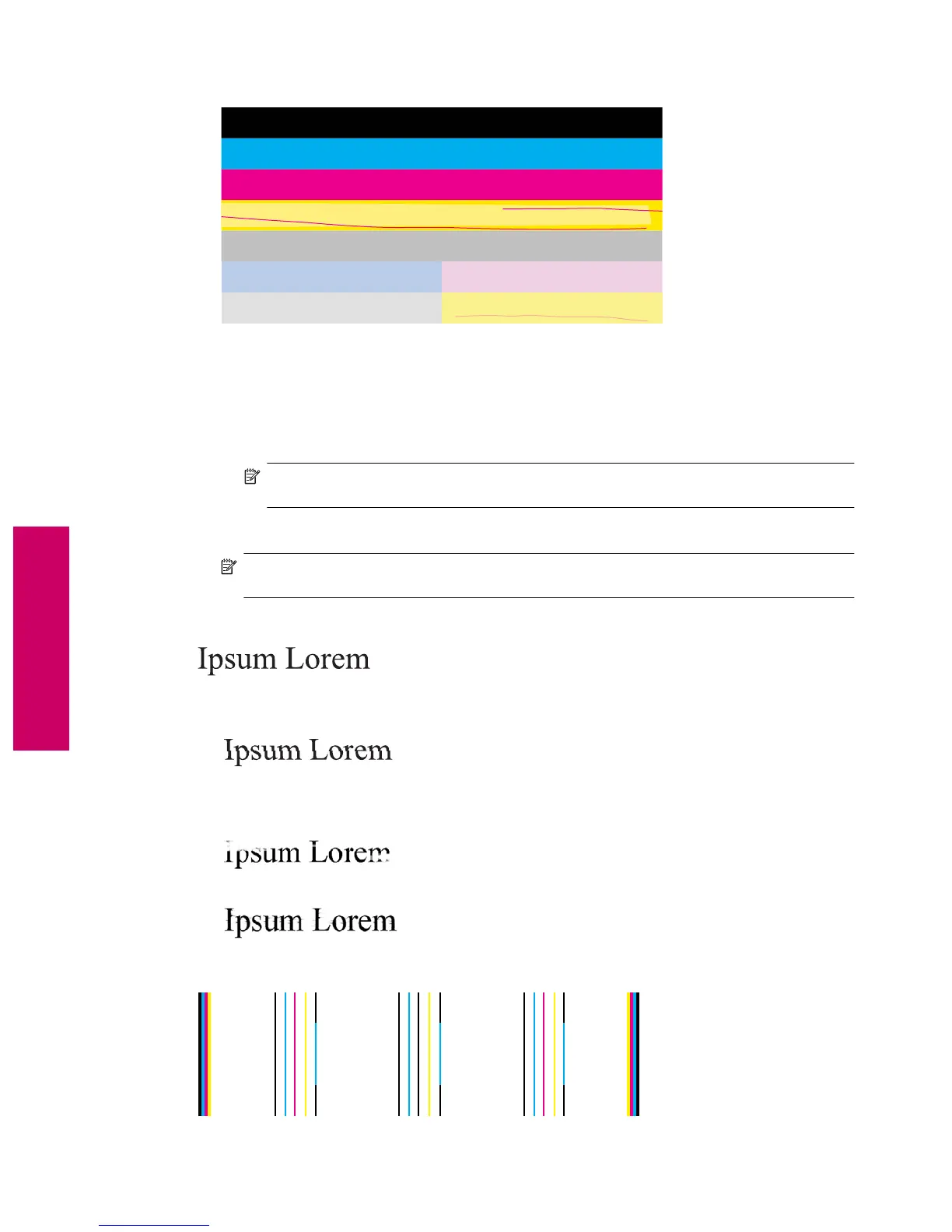 • If any of the color bars show regular white streaks, align the printer. If the issue persists, clean the