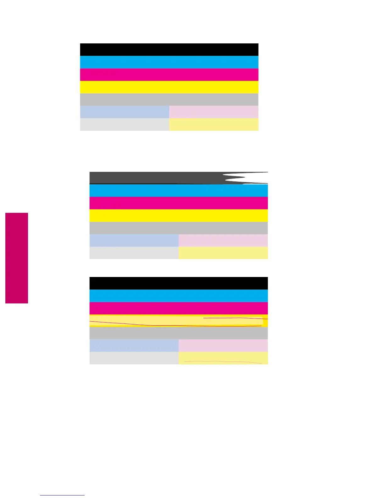 • If any of the color bars are irregularly streaked, lighter on one side, or contain one or more streaks of a