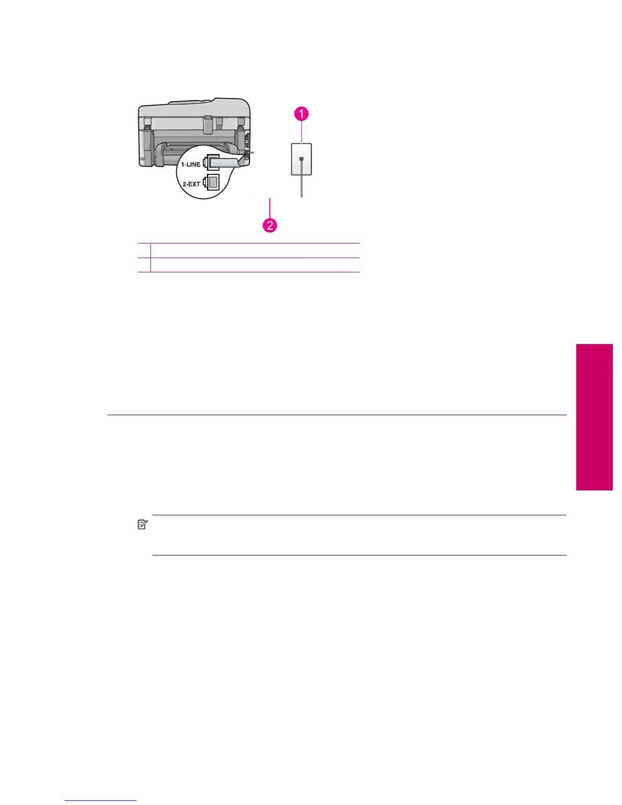 NOTE: If you use the 2-EXT port to connect to the telephone wall jack, you will not be able to send or