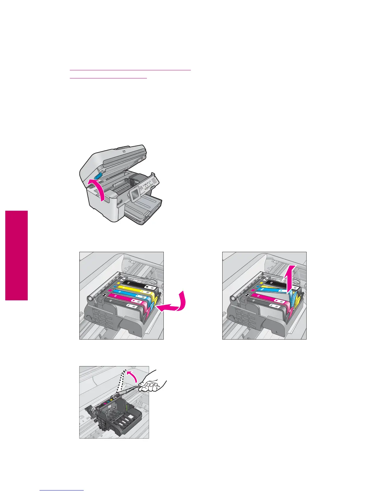 3. Remove all of the ink cartridges and place them on a piece of paper with the ink opening pointing up.