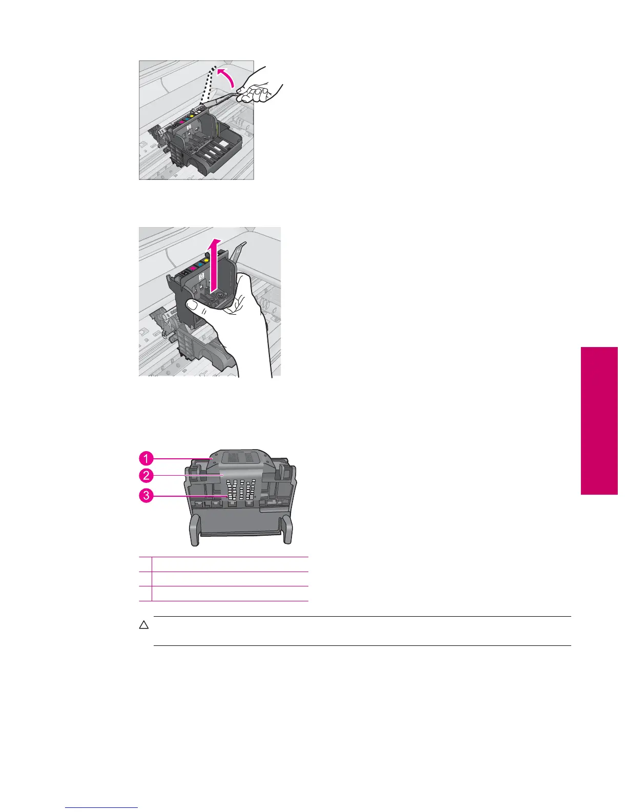 CAUTION: Touch the nozzle and the electrical contact areas only with cleaning materials and not with