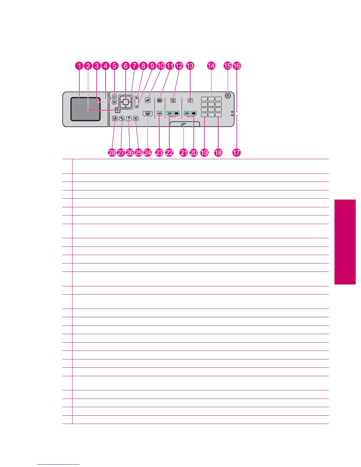 27 Setup: Opens the Setup menu where you can change product settings and perform maintenance functions.