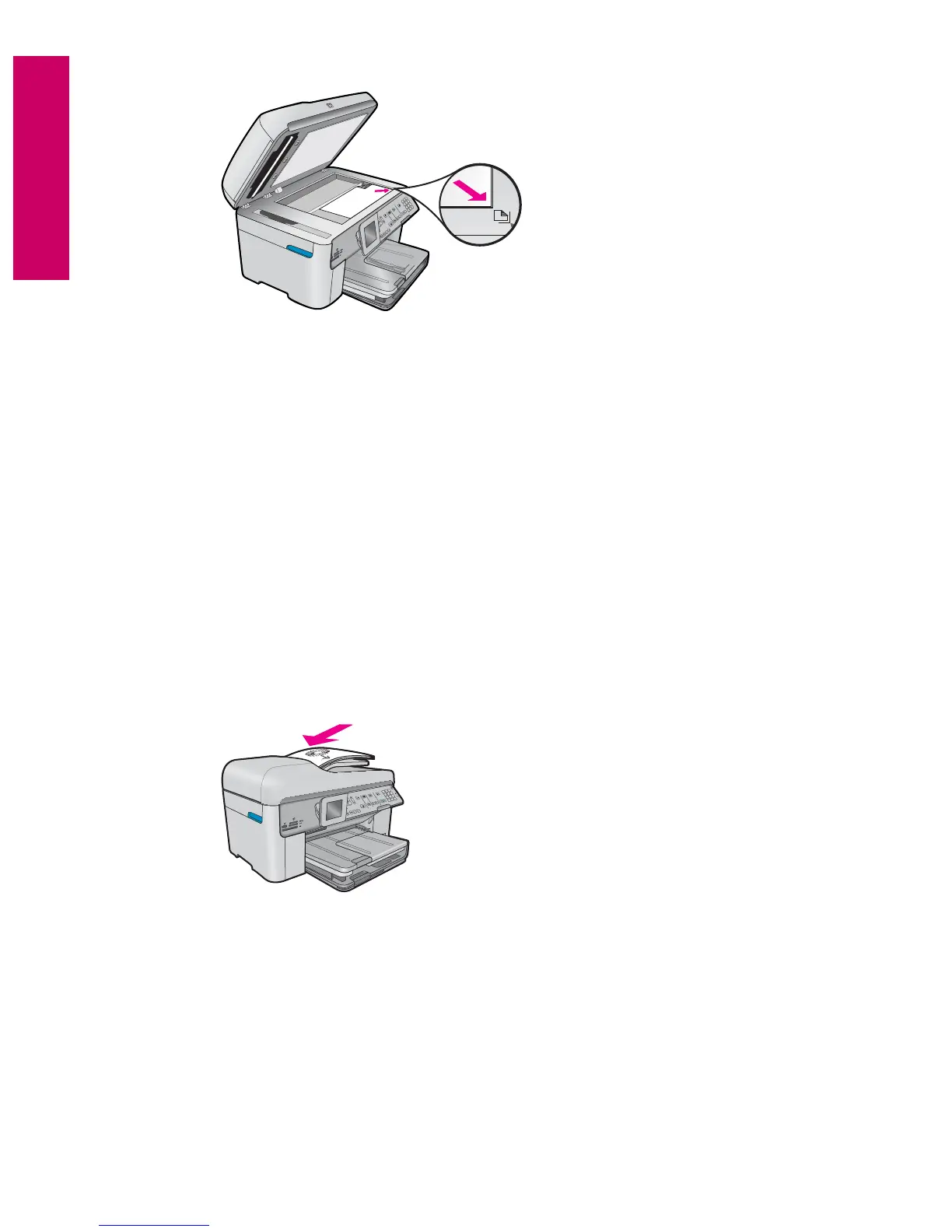 Slide original with print side up into document feeder tray until the product detects the pages.