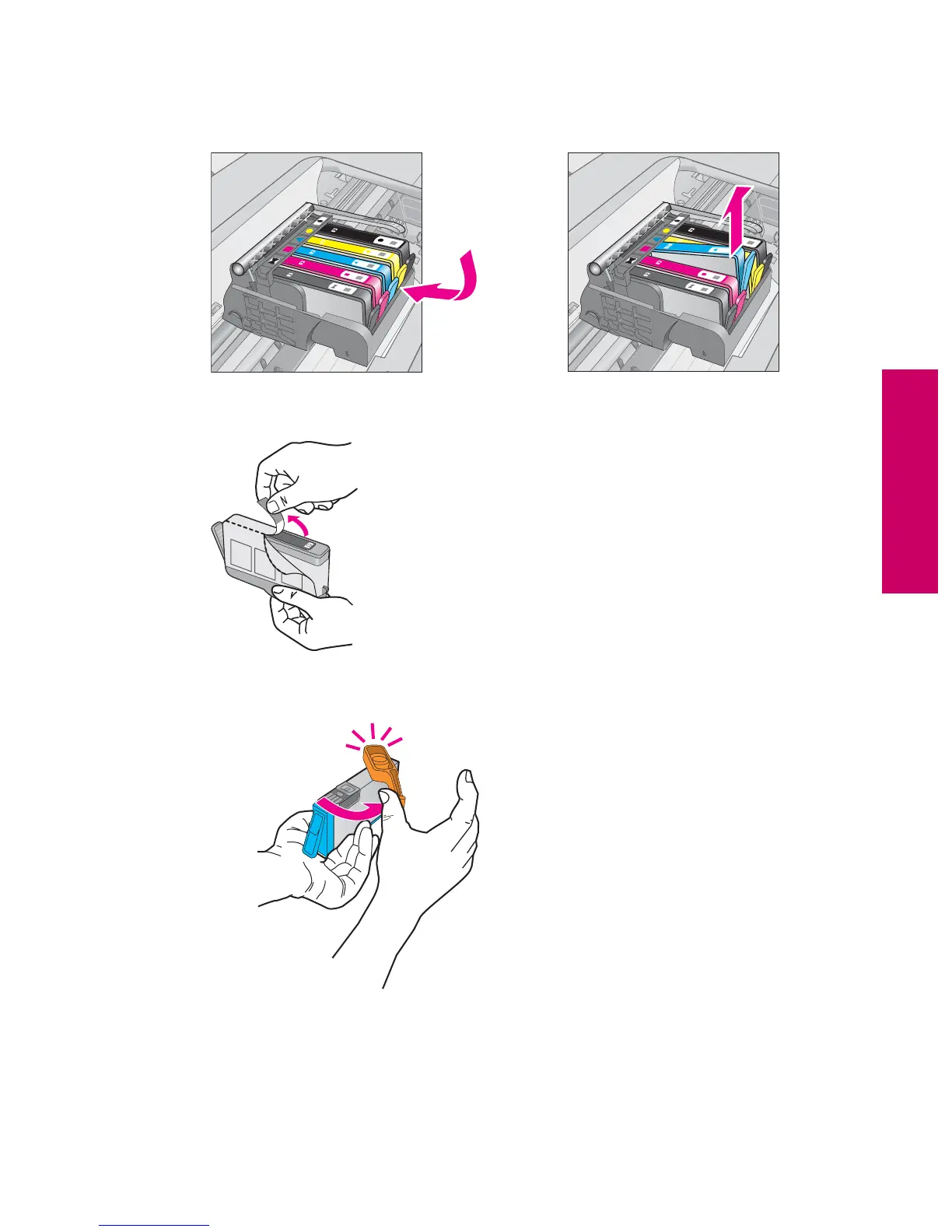 c. Match color icons, then slide cartridge into slot until it clicks into place.