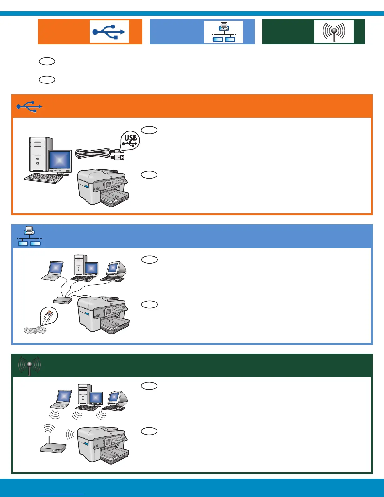 Choose only ONE connection type (A - USB, B - Ethernet/Wired, or C - Wireless (802.11))