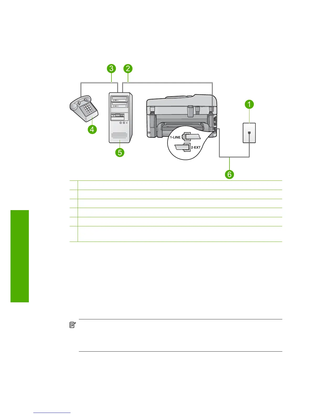 • If your computer has two phone ports, set up the HP Photosmart as described below.