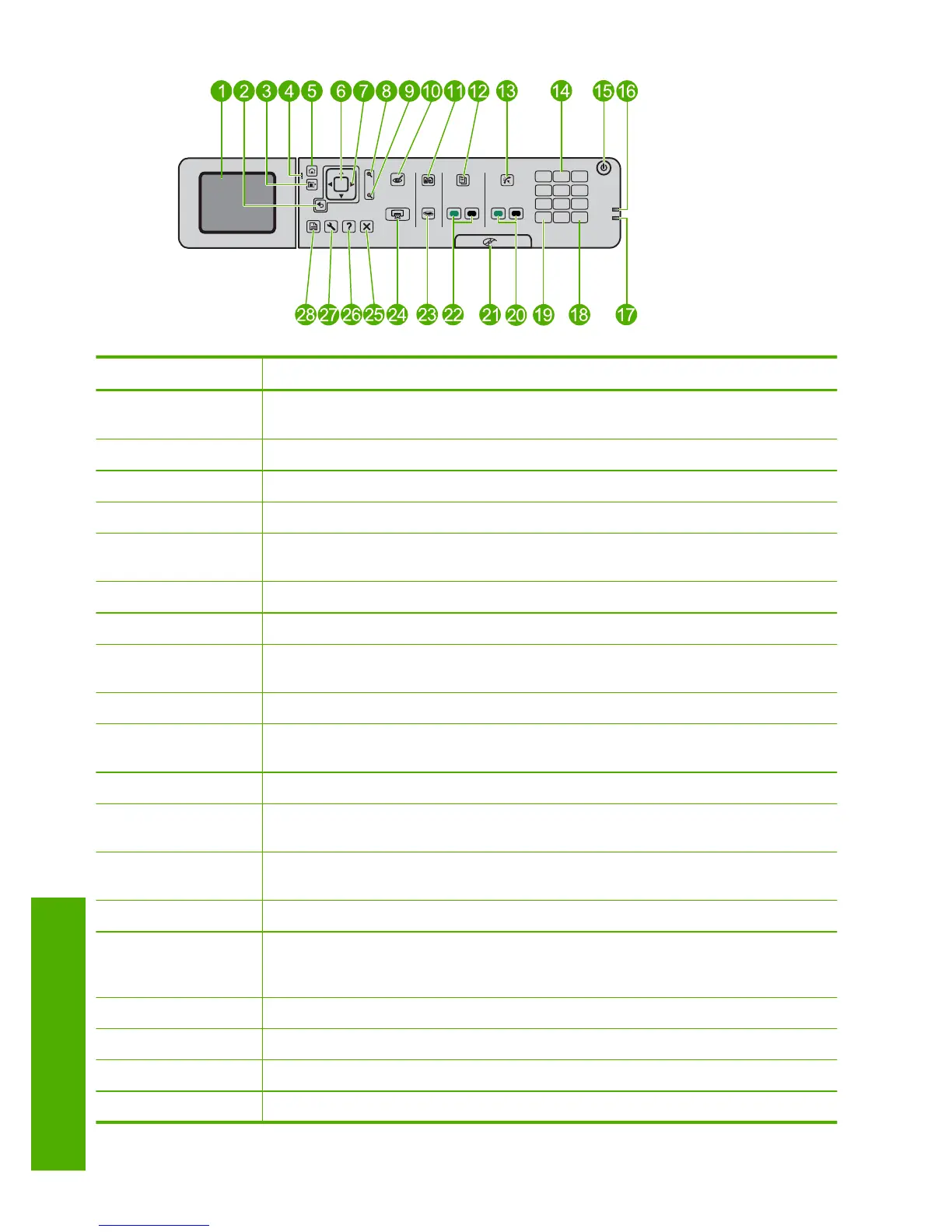 1 Color graphics display (also referred to as the display): Displays menus, photos, and