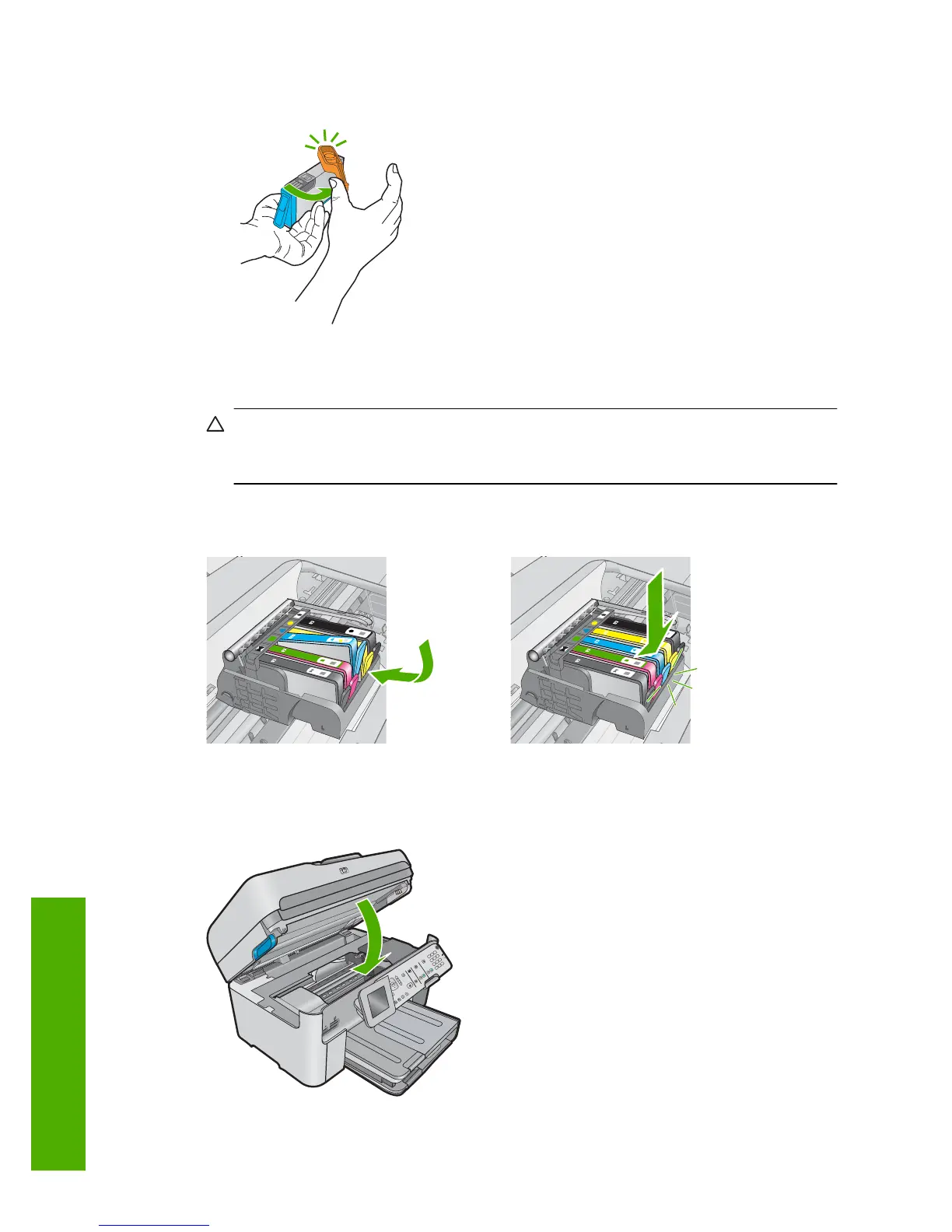 cartridges. Doing so can result in incorrectly seated cartridges and printing