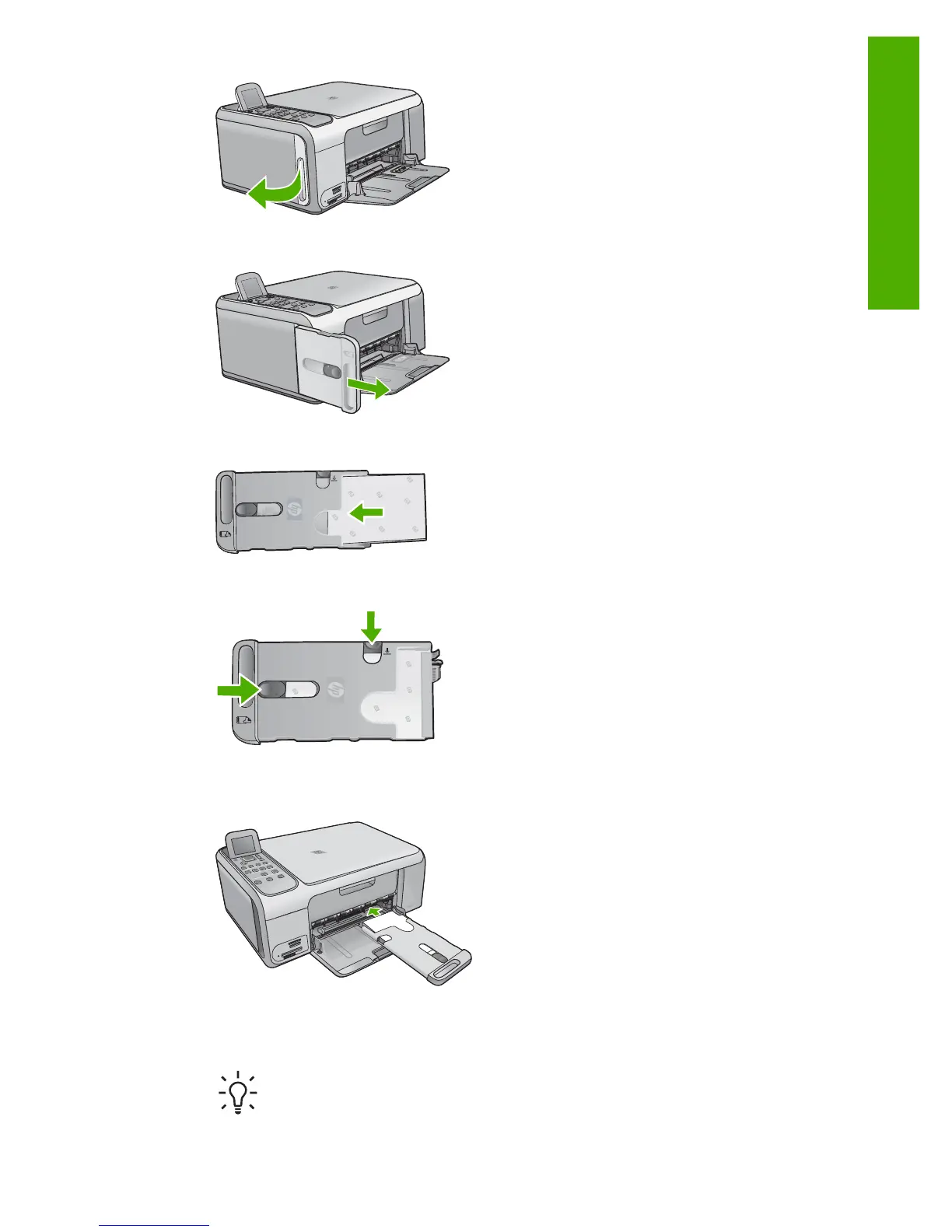 4. Load up to 20 sheets of paper print side down in the photo paper cassette.