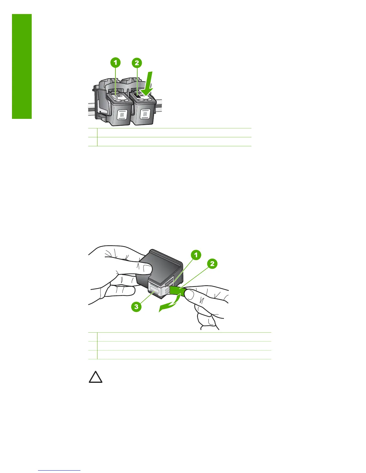 Caution Do not touch the copper-colored contacts or ink nozzles.