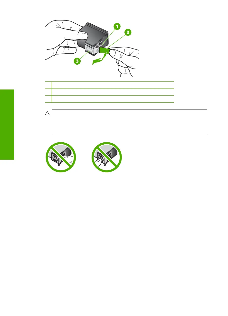 Attention Ne touchez pas les contacts en cuivre ni les buses d'encre. En outre,