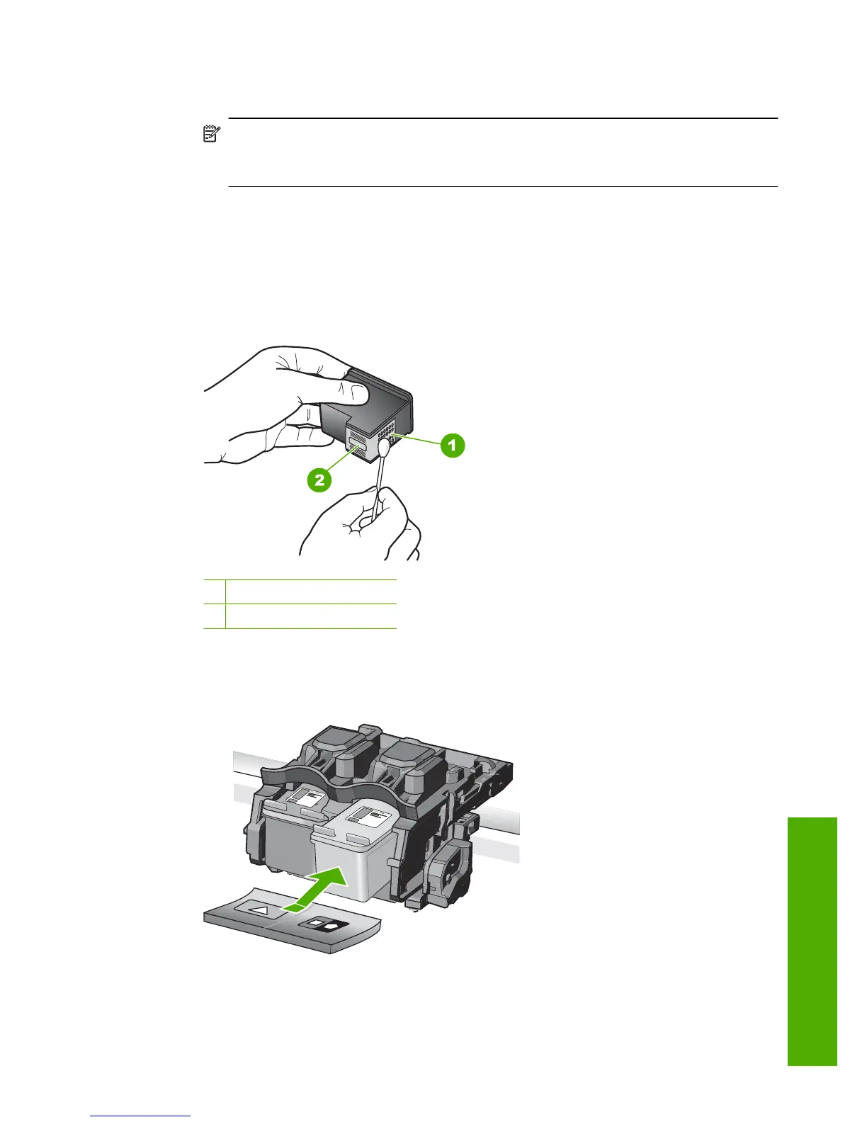 8. Clean only the copper-colored contacts. Allow the print cartridges to dry for