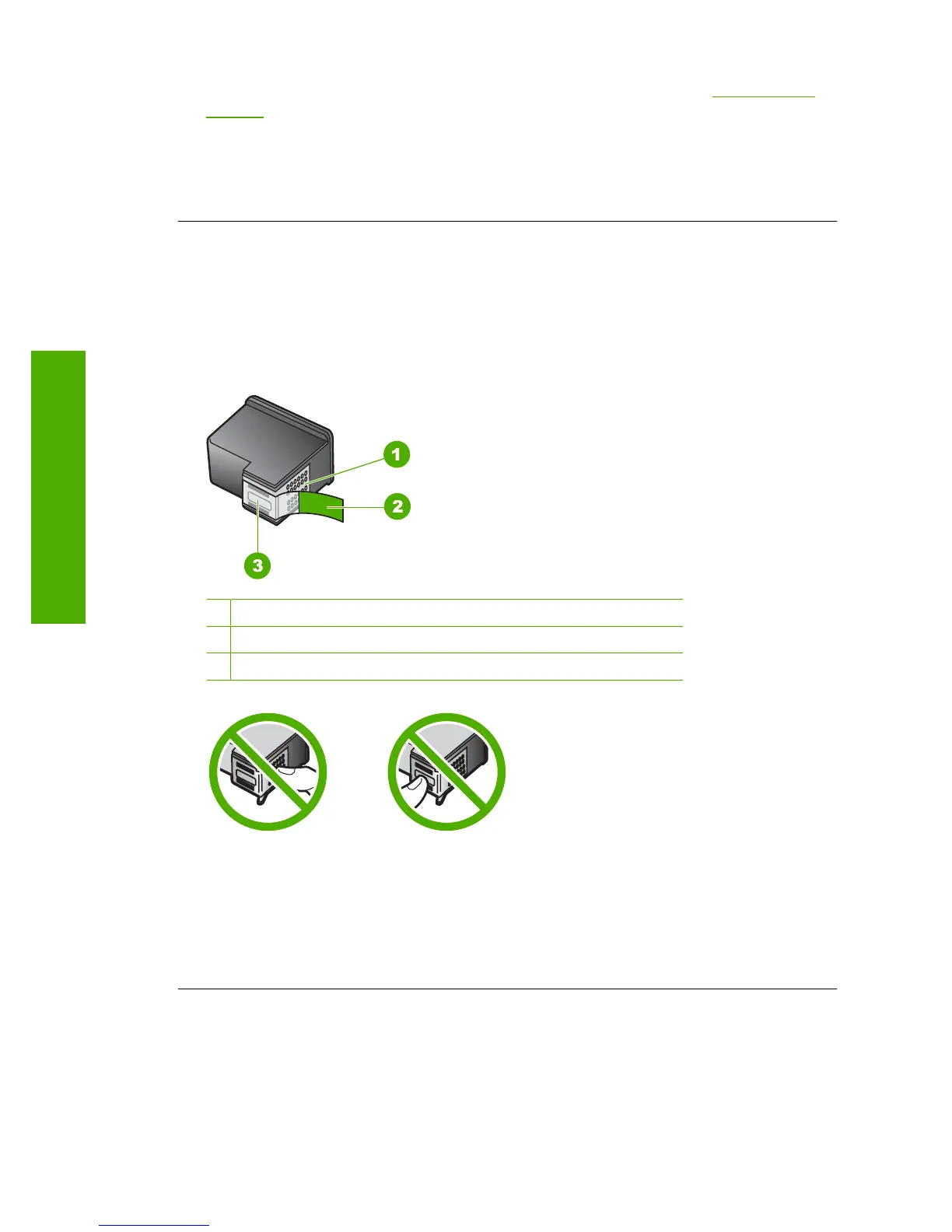 touch the ink nozzles or the copper-colored contacts.