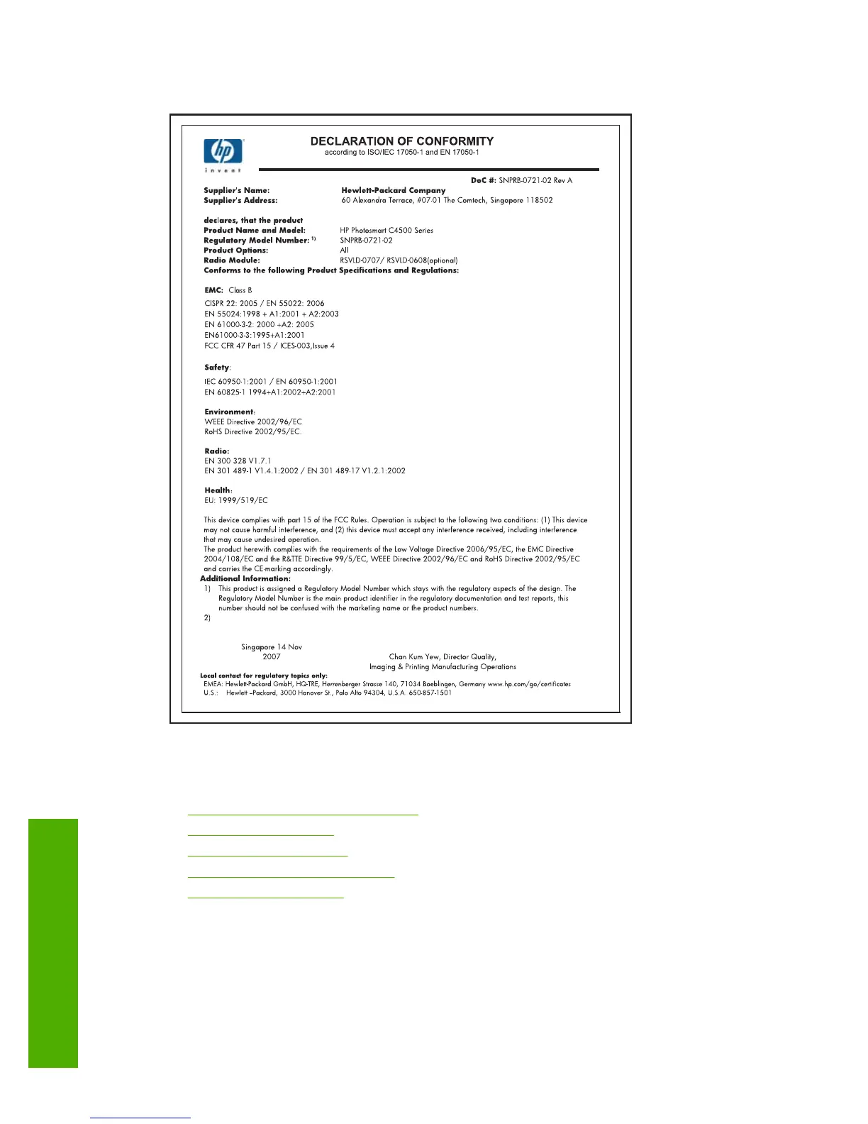 HP Photosmart C4500 All-in-One series declaration of conformity