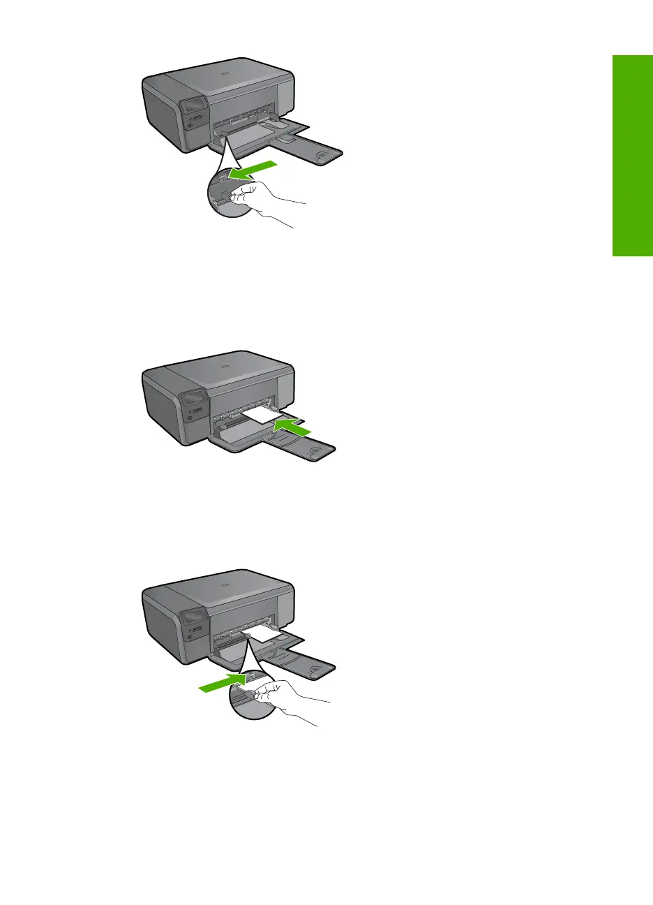2. Inserte la pila de papel fotográfico en el extremo derecho de la bandeja de papel con