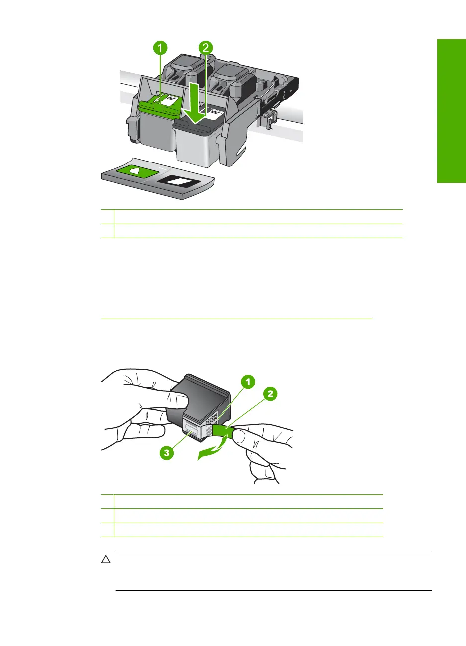 Precaución No toque los contactos de color cobre ni las boquillas de tinta. Si