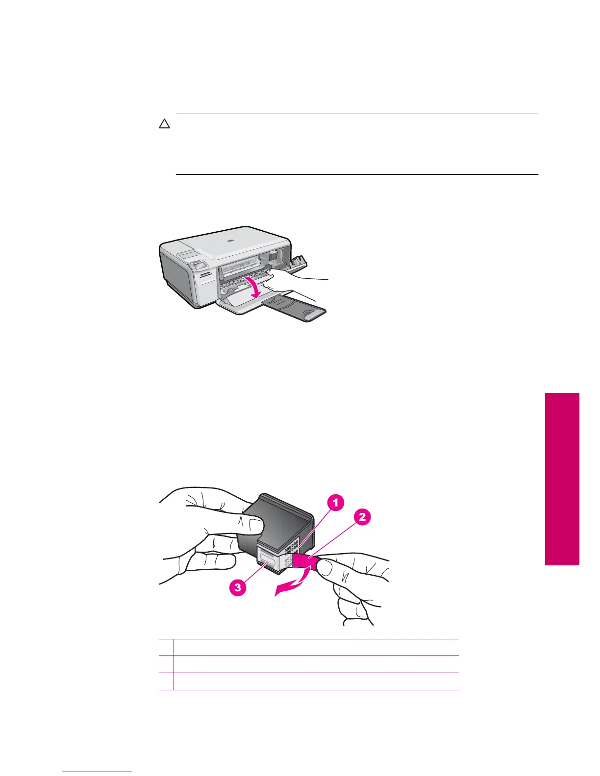 4. Remove the black print cartridge from the slot on the right. Do not touch the ink