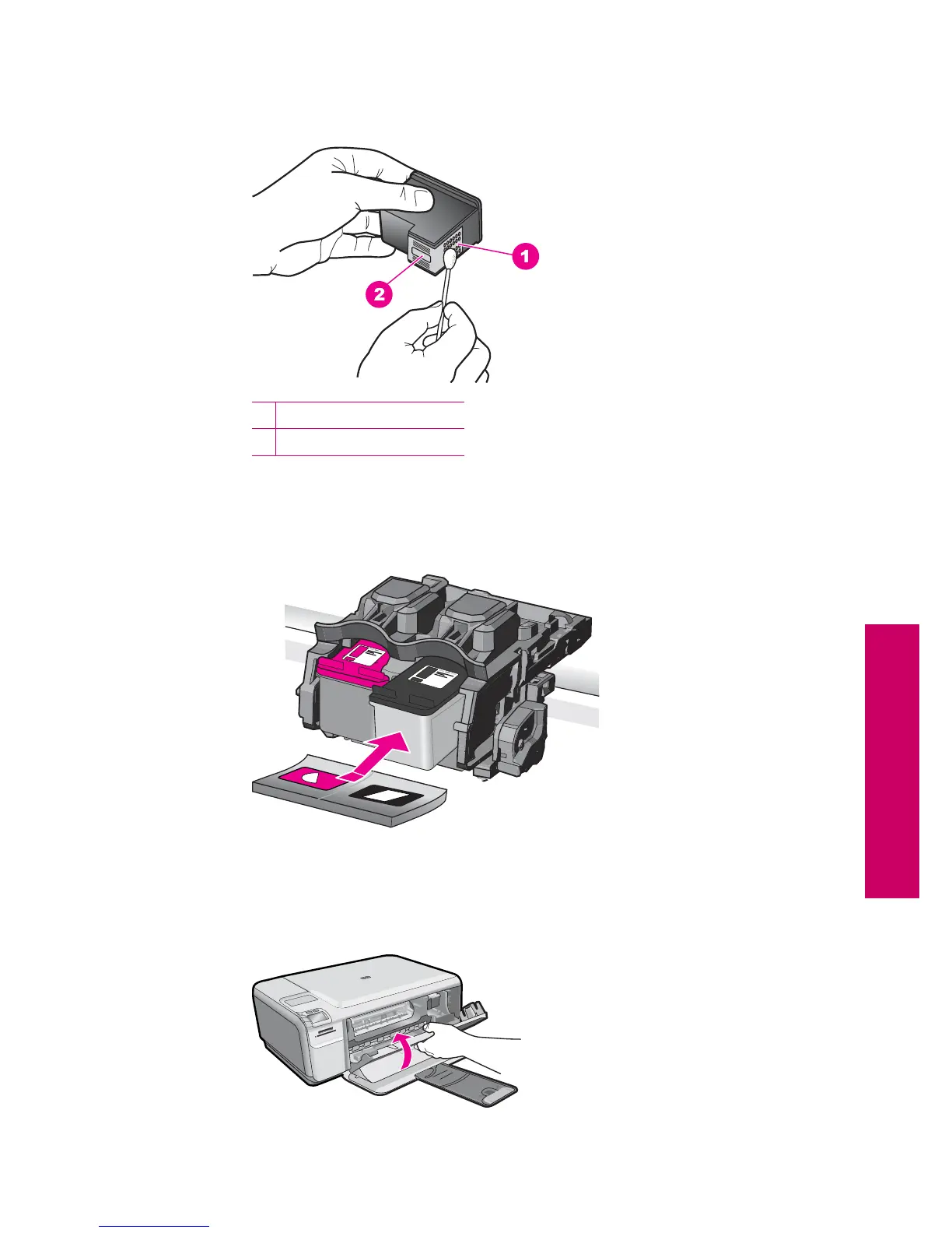 7. Clean only the copper-colored contacts. Allow the print cartridges to dry for