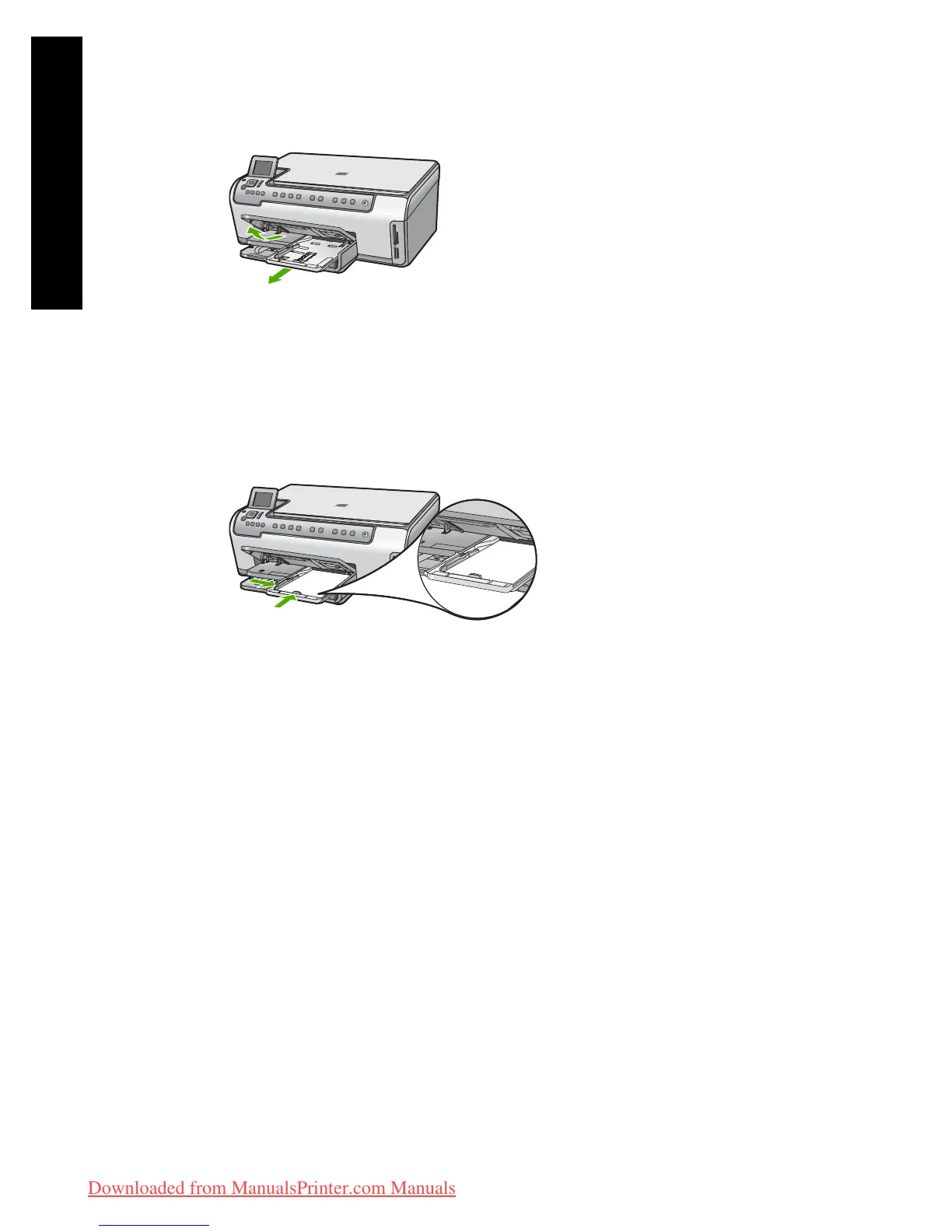 3. Slide the paper-length and paper-width guides inward against the stack of photo