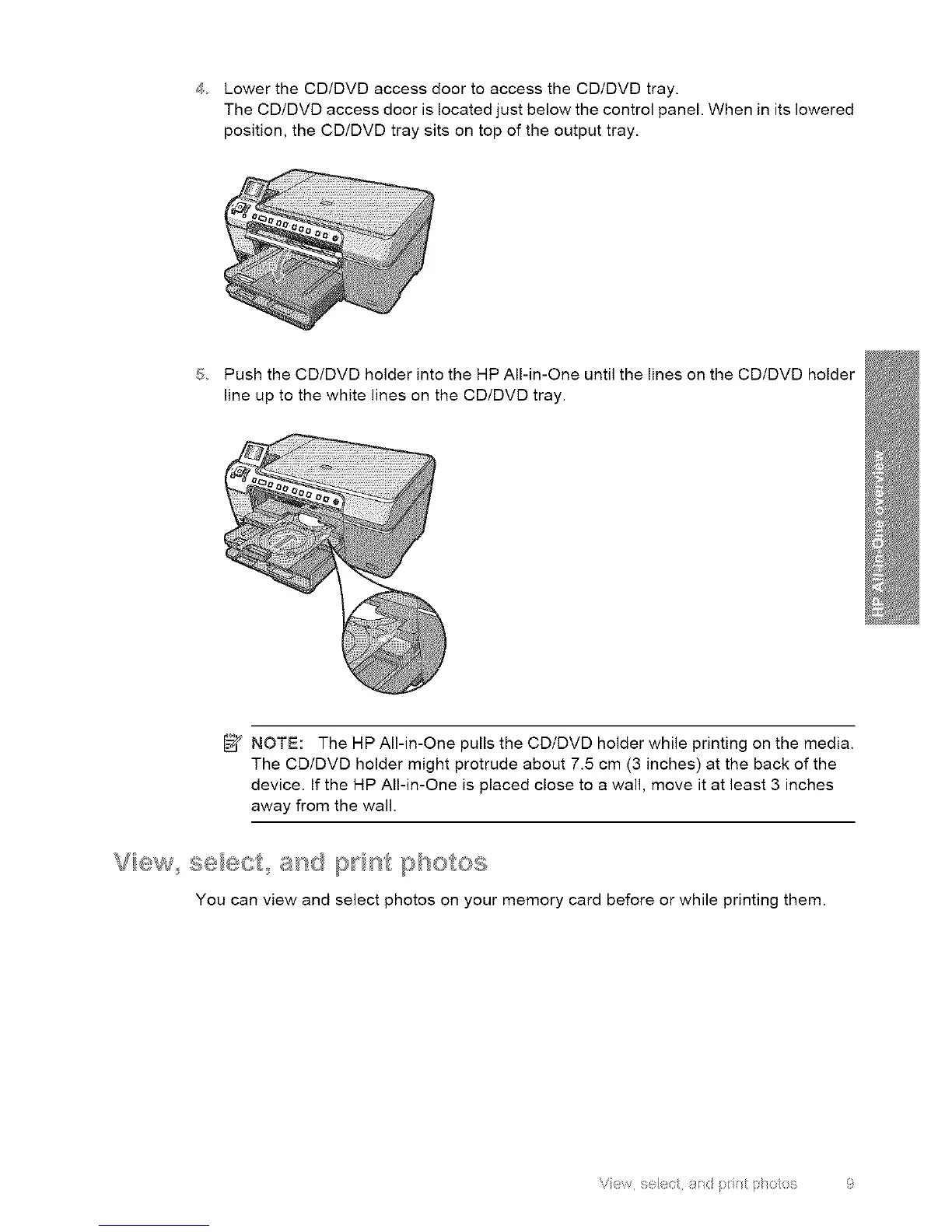 NOTE: The HP All-in-One pulls the CD/DVD holder while printing on the media.