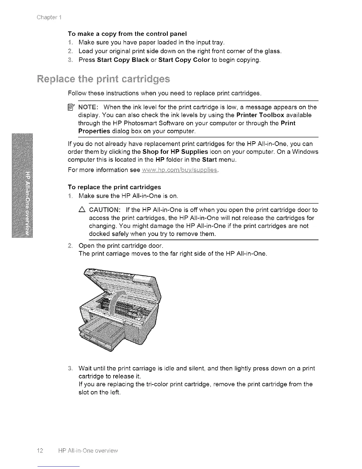 changing. You might damage the HP All-in-One if the print cartridges are not
