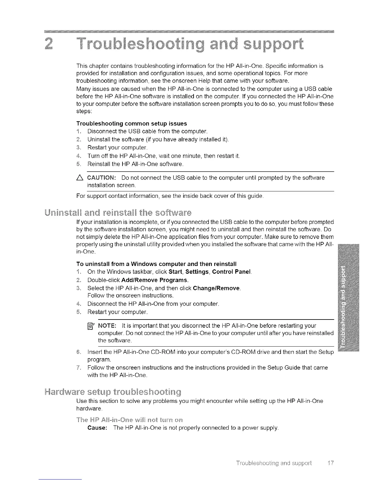 This chapter contains troubleshooting information for the HP All-in-One. Specific information is