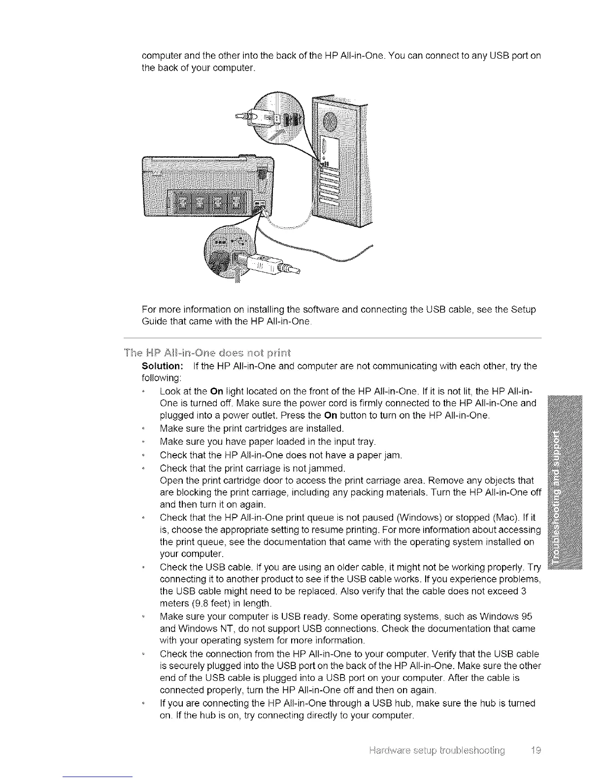 is securely plugged into the USB port on the back of the HP All-in-One. Make sure the other