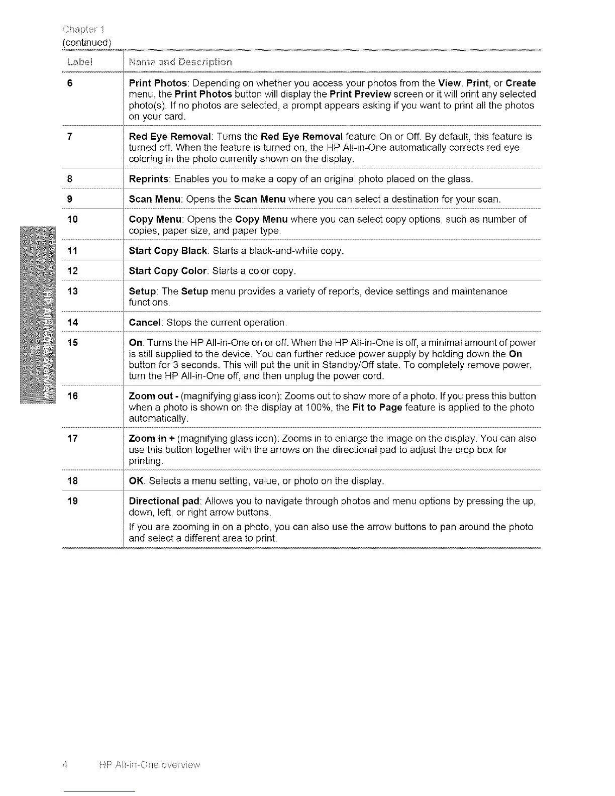 15 On: Turns the HP All-in-One on or off. When the HP All-in-One is off, a minimal amount of power
