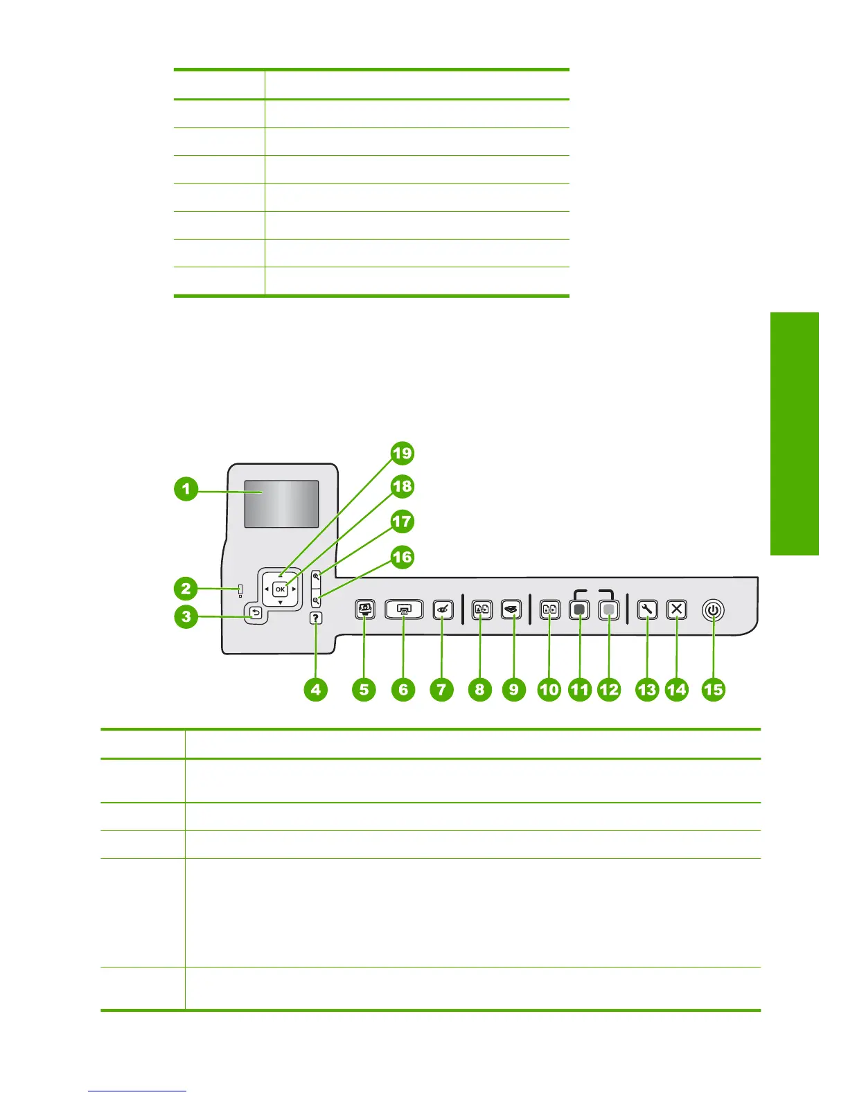 The following diagram and related table provide a quick reference to the HP All-in-One