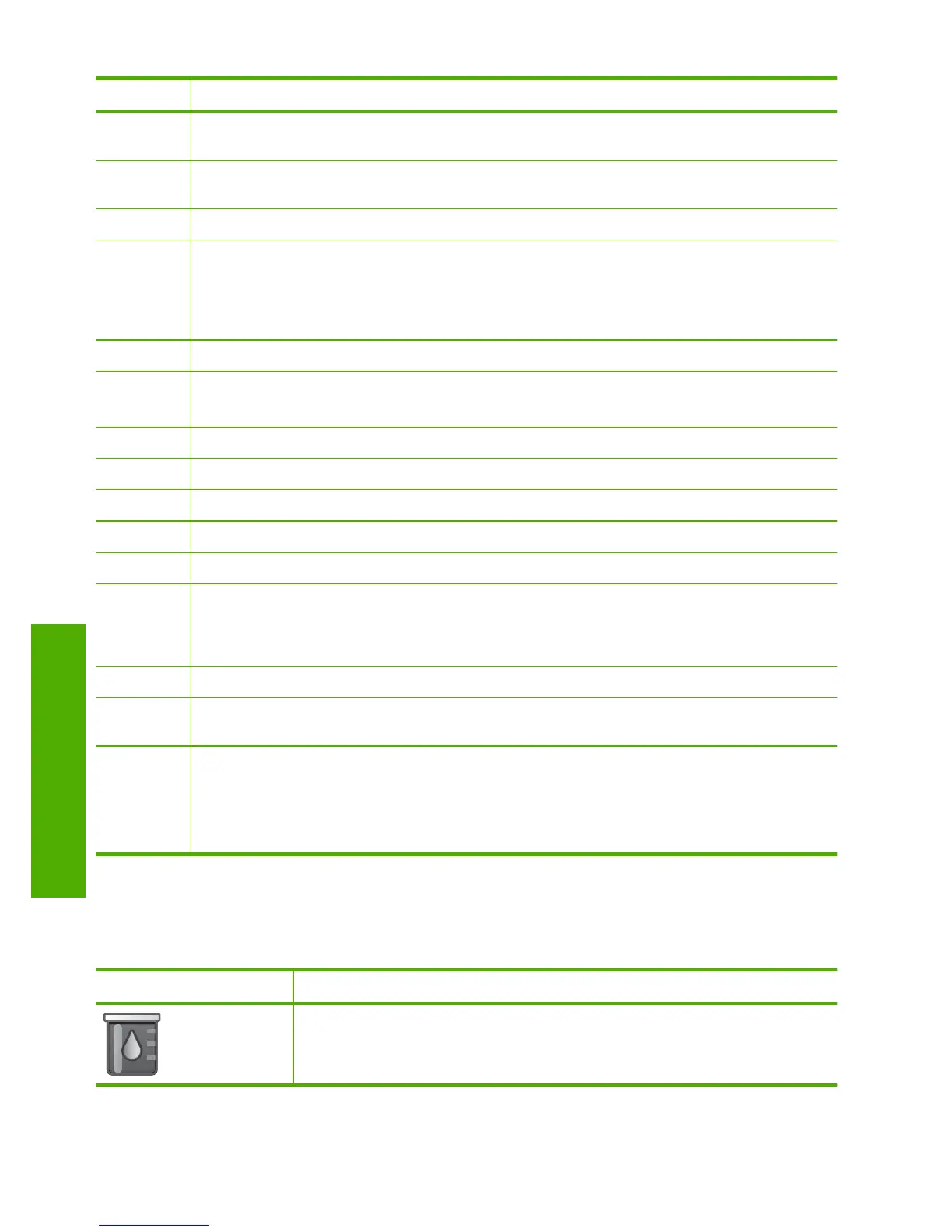 Shows the ink cartridge status. The color of the icon corresponds to the color of