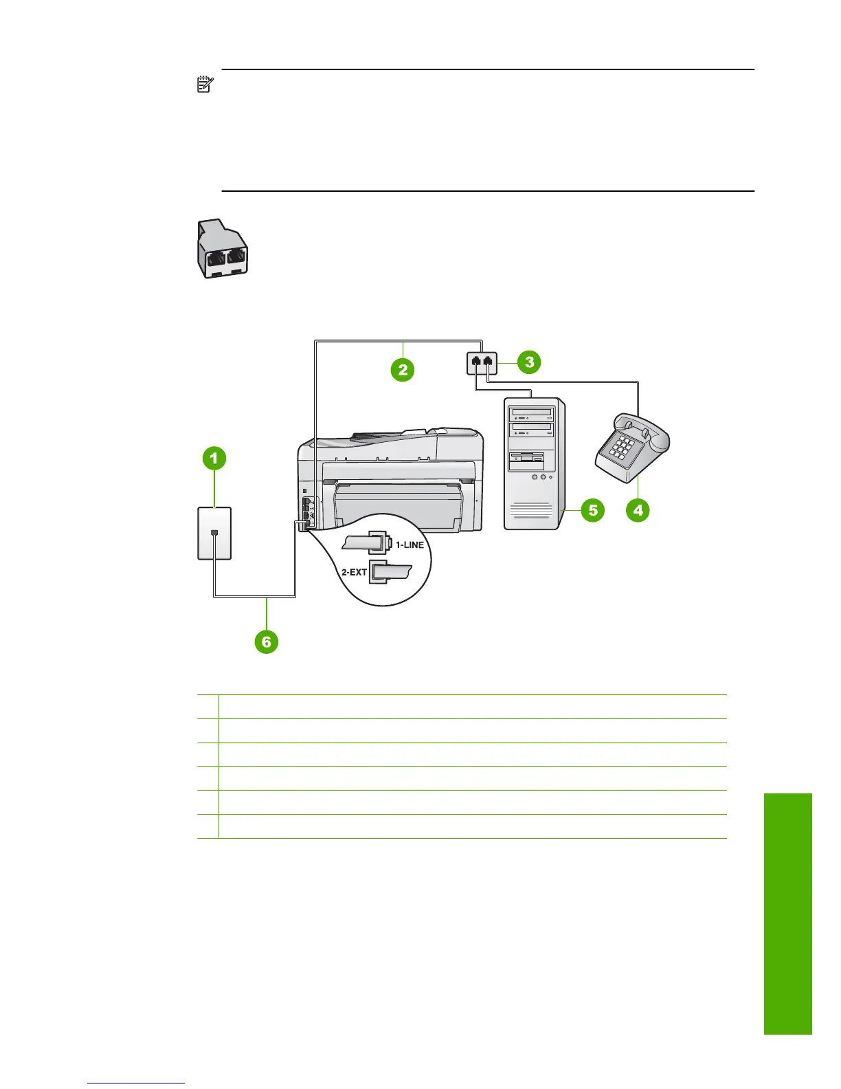 6 Phone cord supplied in the box with the HP All-in-One connected to the 1-LINE port