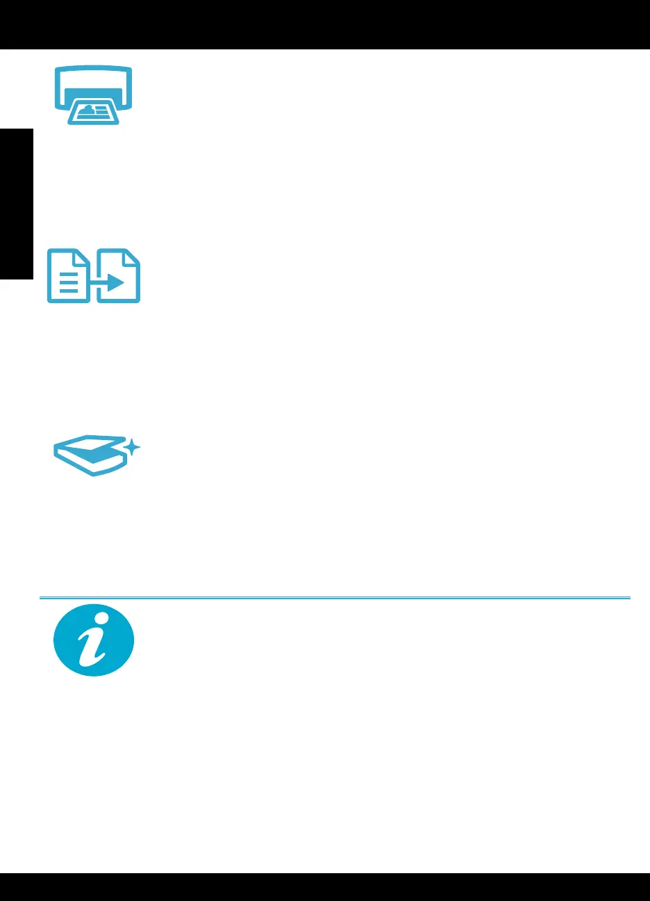 • Print documents and photos from software applications on a connected computer.