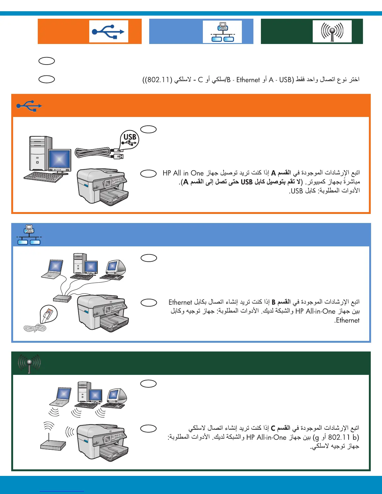Choose only ONE connection type (A - USB, B - Ethernet/Wired, or C - Wireless (802.11))