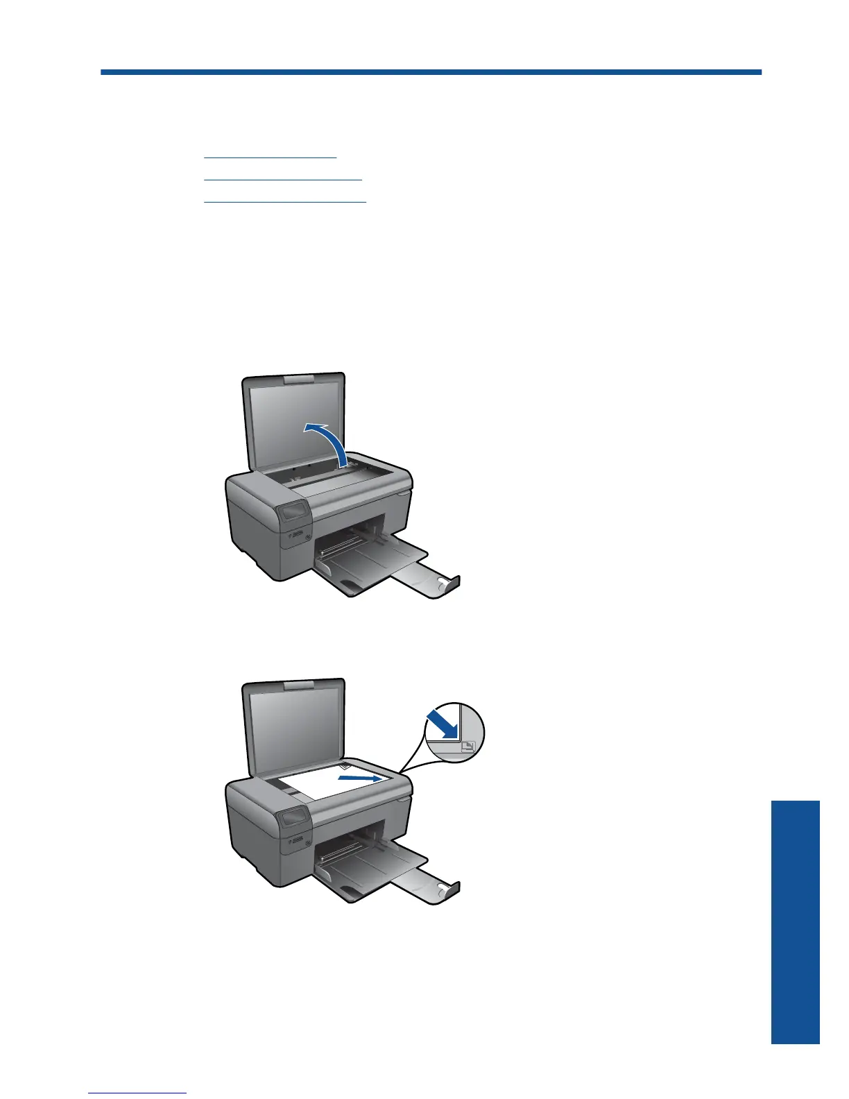 b. Load original print side down on right front corner of glass.