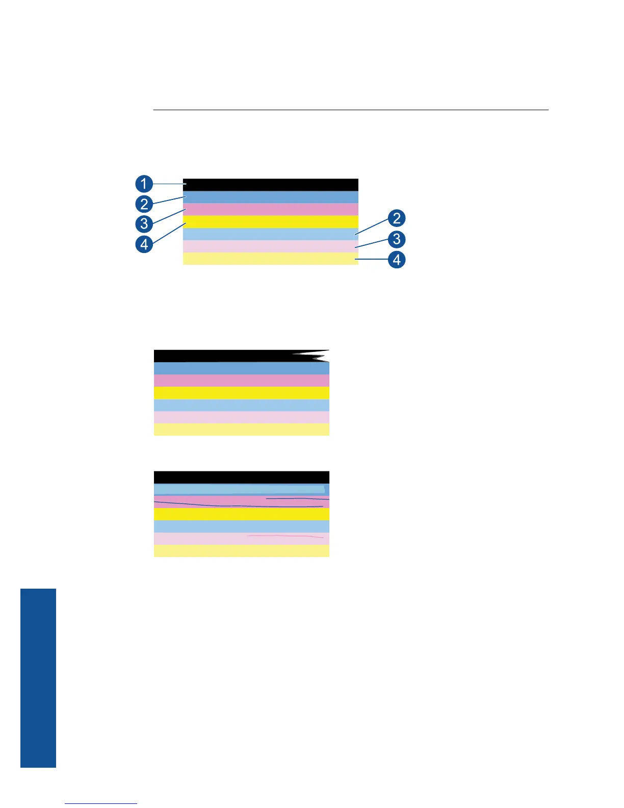2. Look at the color bars in the middle of the page. The bars should be solid, have sharp