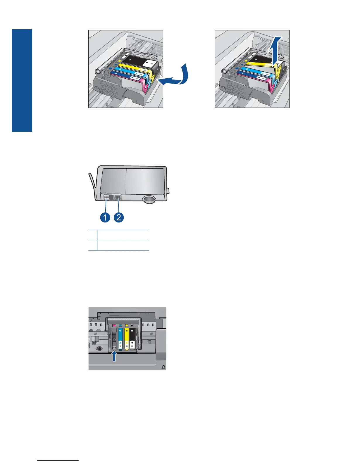 4. Hold the ink cartridge by its sides with the bottom pointing up and locate the